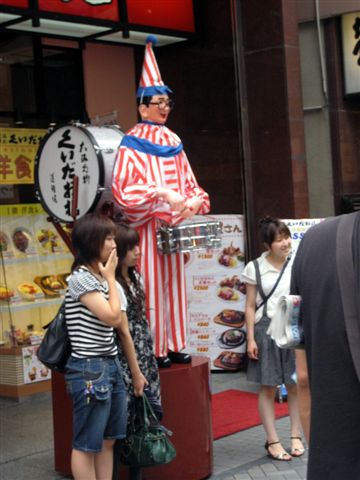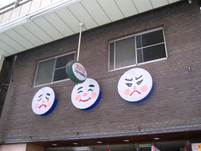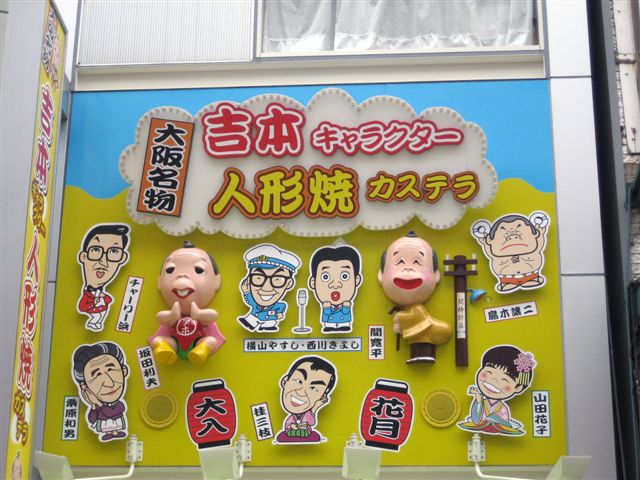 對面賣的吉本人形燒,招牌相當逗趣