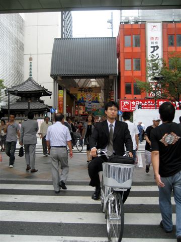 前往道頓堀的路上,日本相當多人在騎腳踏車,上班族也不例外XD